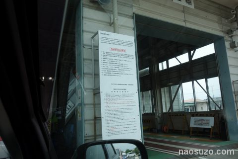 停止線がありますが前車についてずいずい入ってしまった方がいました。バックして元のところまで下がるように検査官に誘導されました。スムーズな検査作業の妨げになりますので慌てず指示に従って車を動かしましょう。