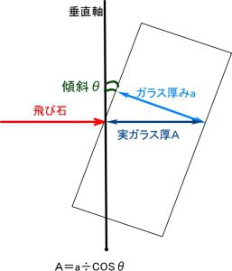 傾斜しているフロントガラスの厚みの計算をしてみます。