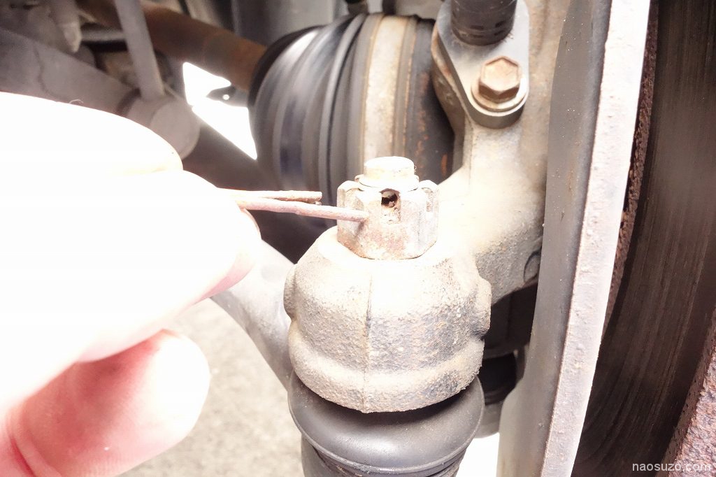 王冠ナットに緩み留めの割ピンで固定されています。