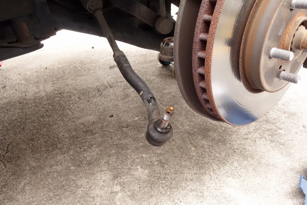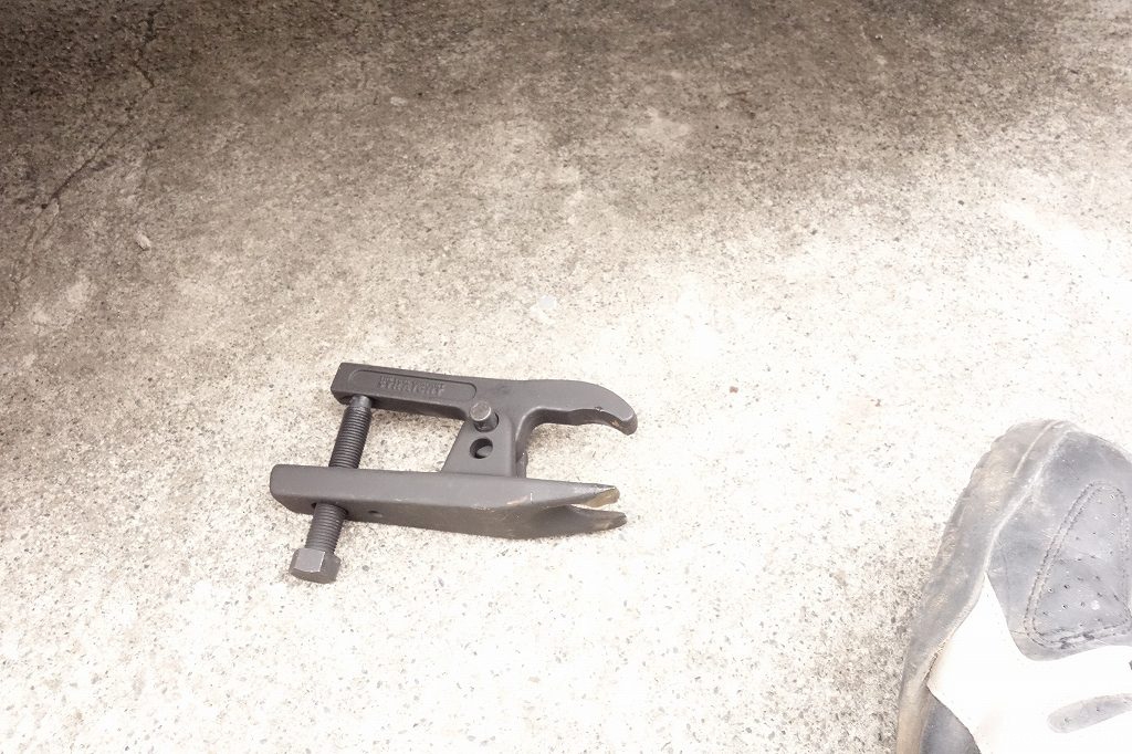 タイロットエンドは、テーパー形状にてはまっているのでタイロッドエンドプーラーを使って外します。