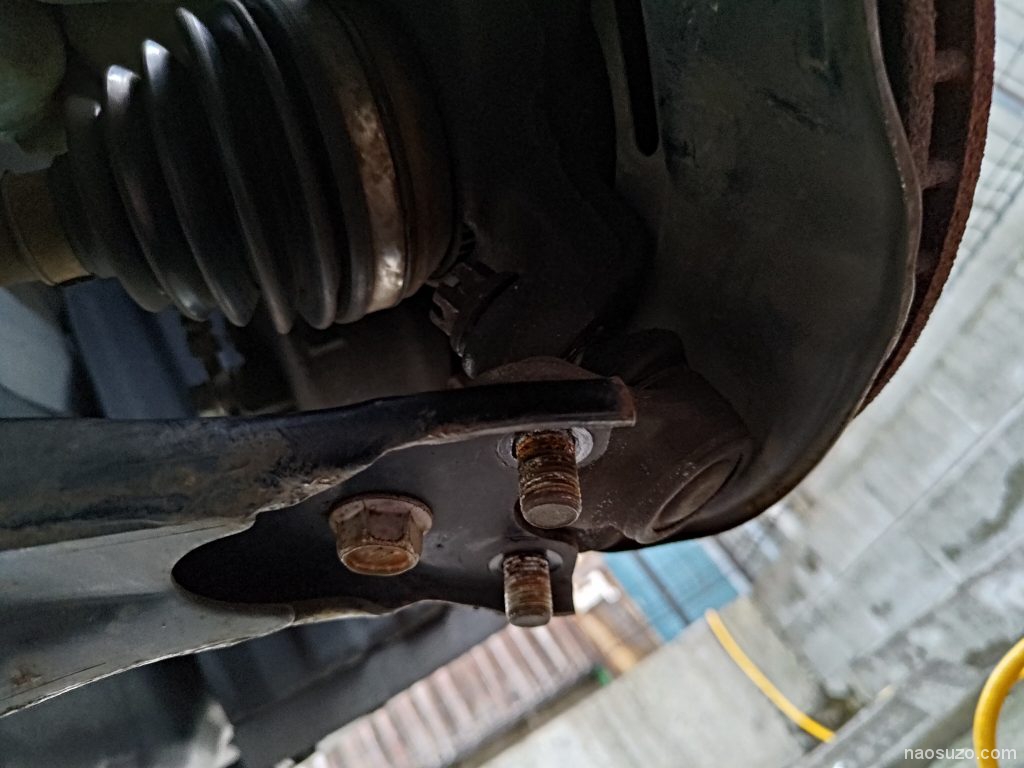 スタビリンクのナットはほぼ固着していたので、ヒートガンで温めると緩みました。