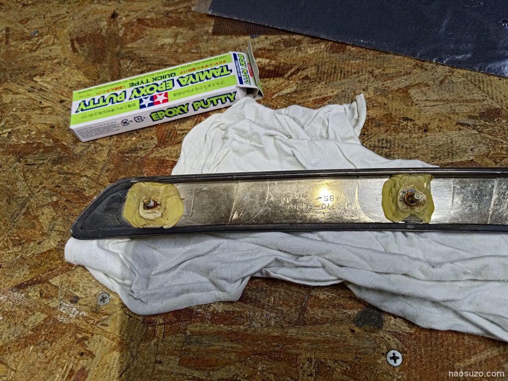 ボンネットのモールのボルト部がまた割れたので補修。