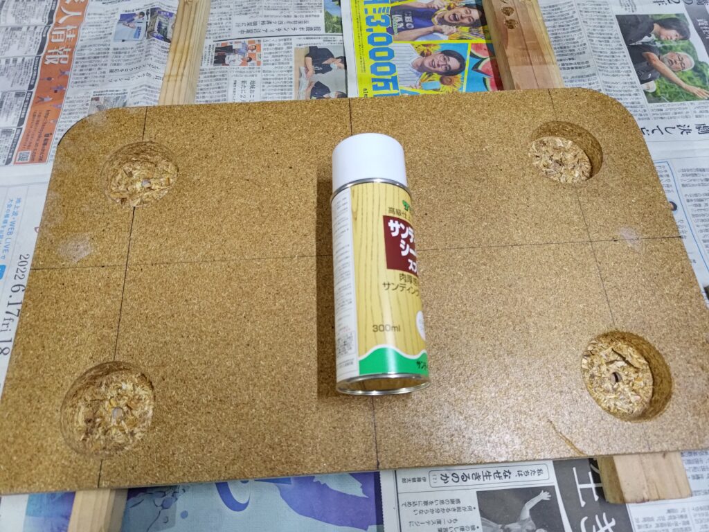 次は、4カ所穴を掘ったら木工用のシーラーを塗ります。