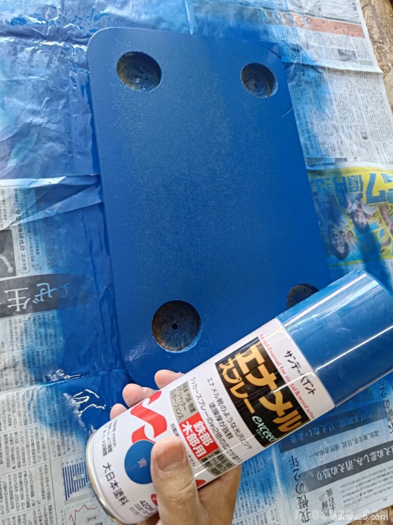 下塗りの次は、色を塗っていきます。今回は、エナメルスプレーのブルーでしっとりとしたヌルヌルのツヤを目指していきます。