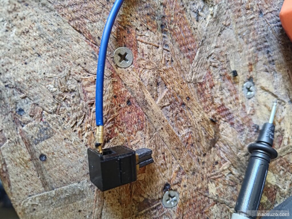 おやおや、ブラシが片側が導通がないようです。テスタの上の写真は片手離してますので作業イメージということでお願いします。