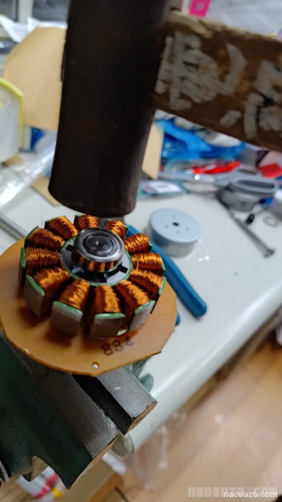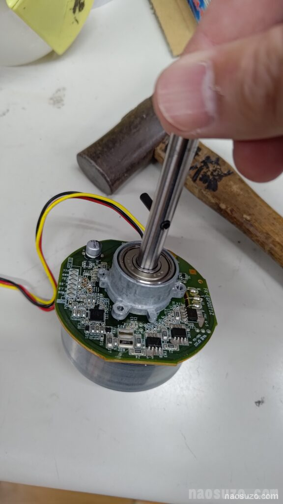 基板を割らないように、軸を打撃してベアリングを少し浮かせてみます。