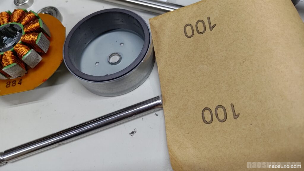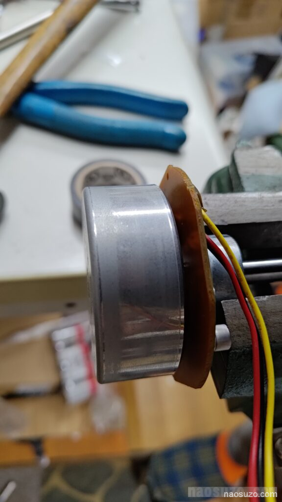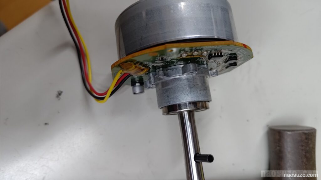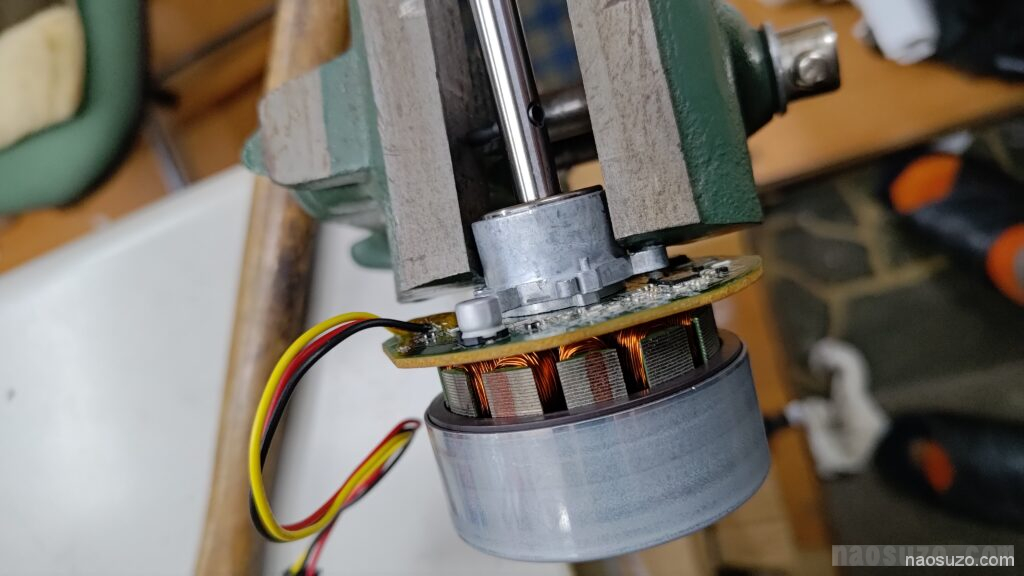 そして、何度か、通電して軸を手で回しながら試行していると時々、軽く回ってそのあとに動かなくなり、コイルの通電が切れます。