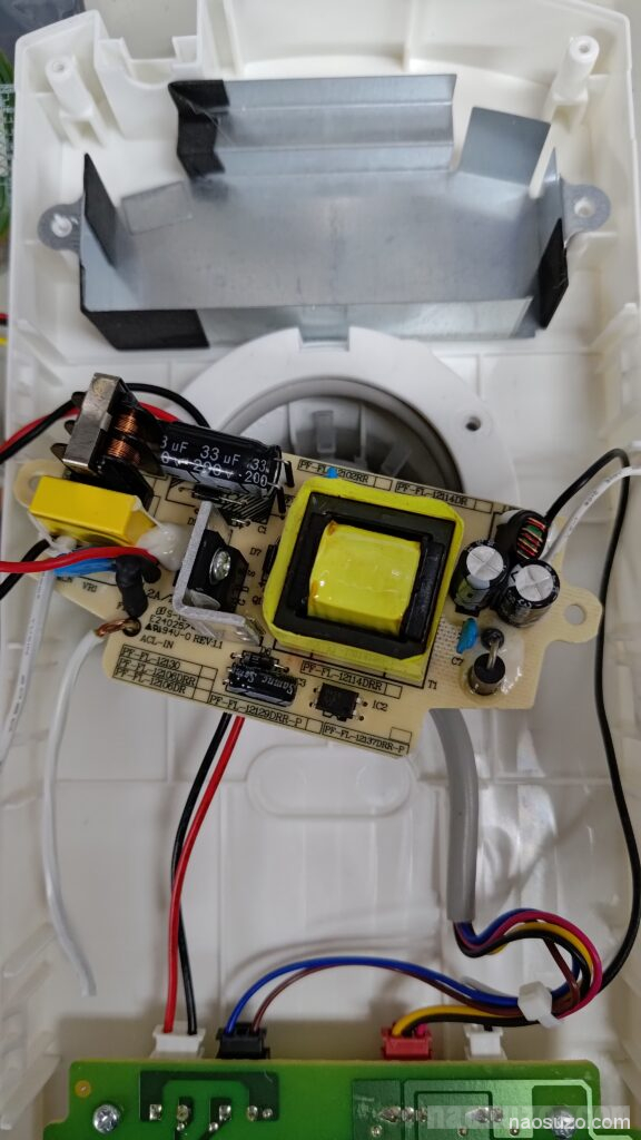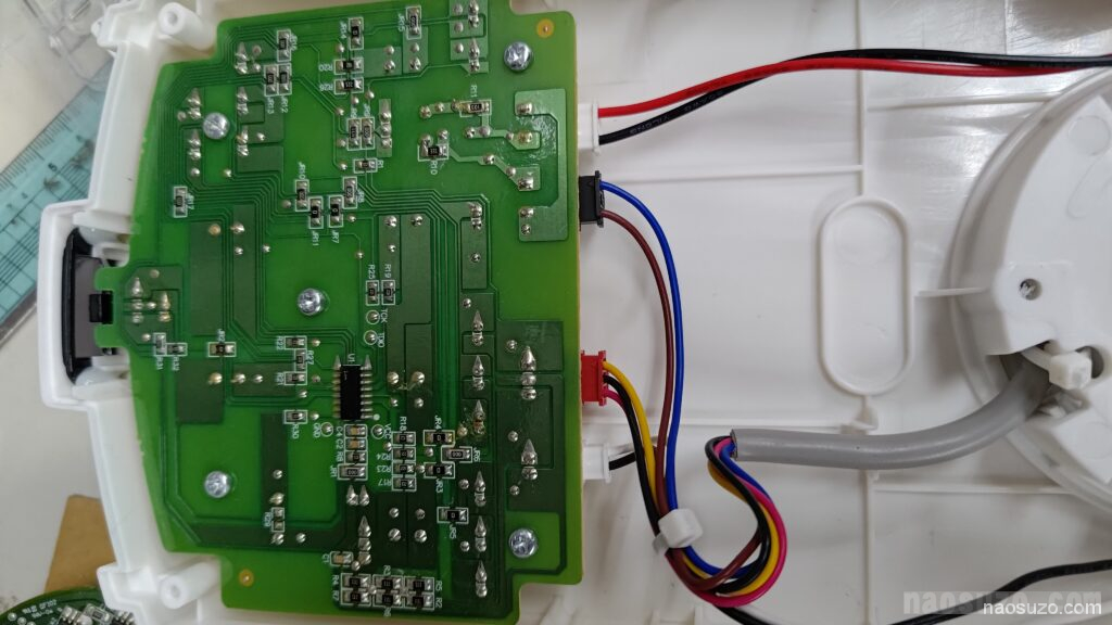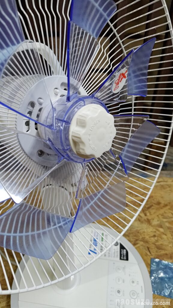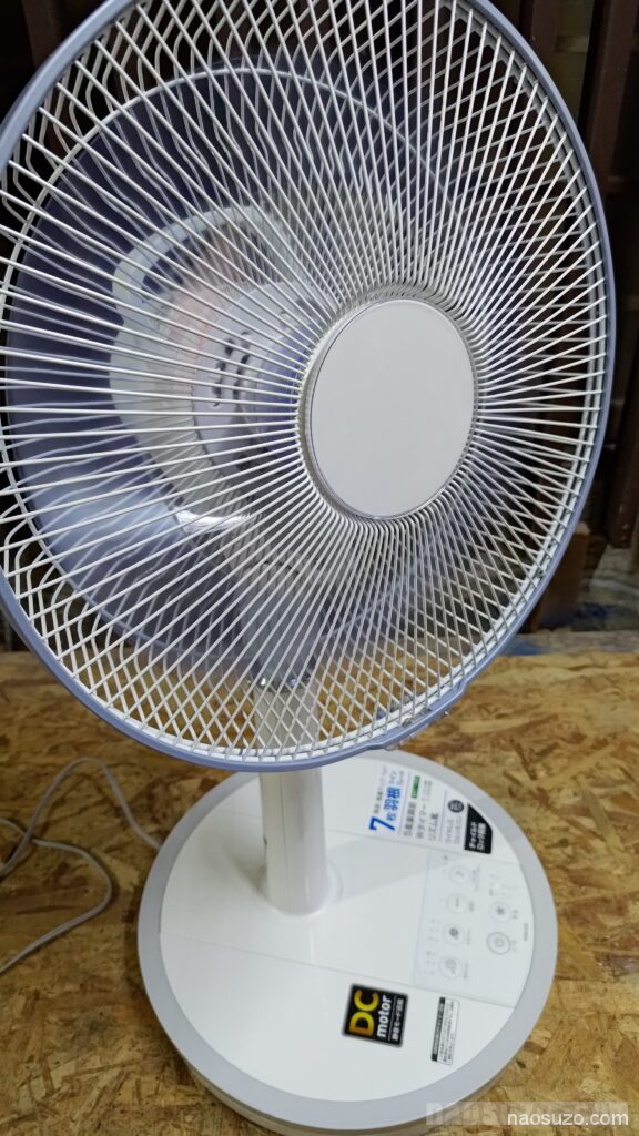 もちろん、DIY修理ですから途上で動作確認や回路チェックを行なったりする必要がありますので都度、コンセントを差して電源を入れて動かしたするわけですが、羽根のカバーを外していたり回路の配線が向きだしになっていますので修理の際はくれぐれも怪我や感電にご注意ください。