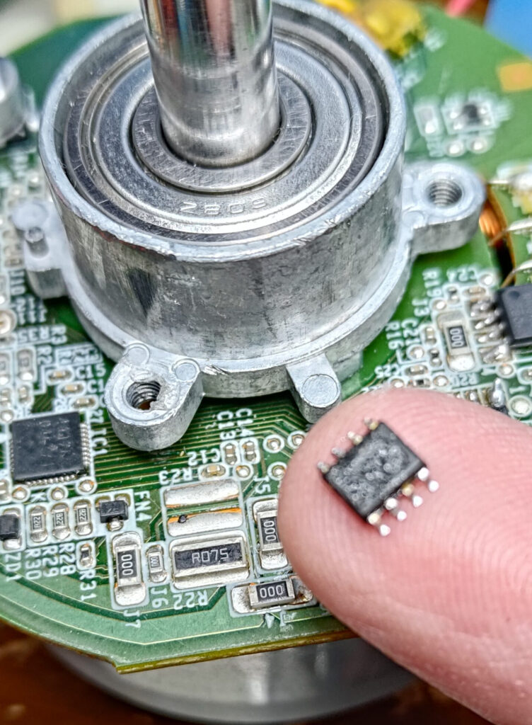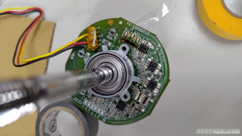 そう、回転位置を検出するホール素子が基板にはついていました。もちろん、そのことは知っていたんですが、磁石から離れすぎていたら検知出来ないんです。
